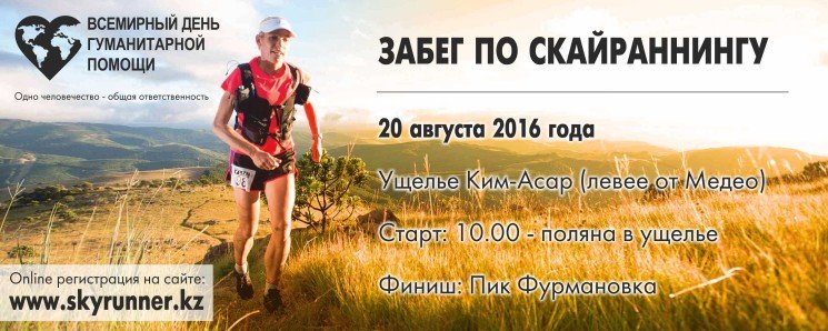 Управление по координации гуманитарных вопросов ООН для стран Кавказа, Центральной Азии и Украины совместно с Федерацией Скайраннинга Республики Казахстан, Обществом Красного Полумесяца Казахстана и Департаментом по чрезвычайным ситуациям г. Алматы приглашает всех желающих принять участие в любительском забеге по скайраннингу, организованному в честь Всемирного дня гуманитарной помощи.