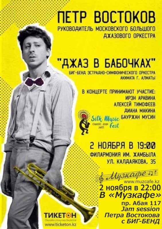 В среду 2 го ноября 19:00 в зале филармонии ( цкз) состоится концерт московского трубача и дирижера: Петра Востокова с Бин-Бенд.