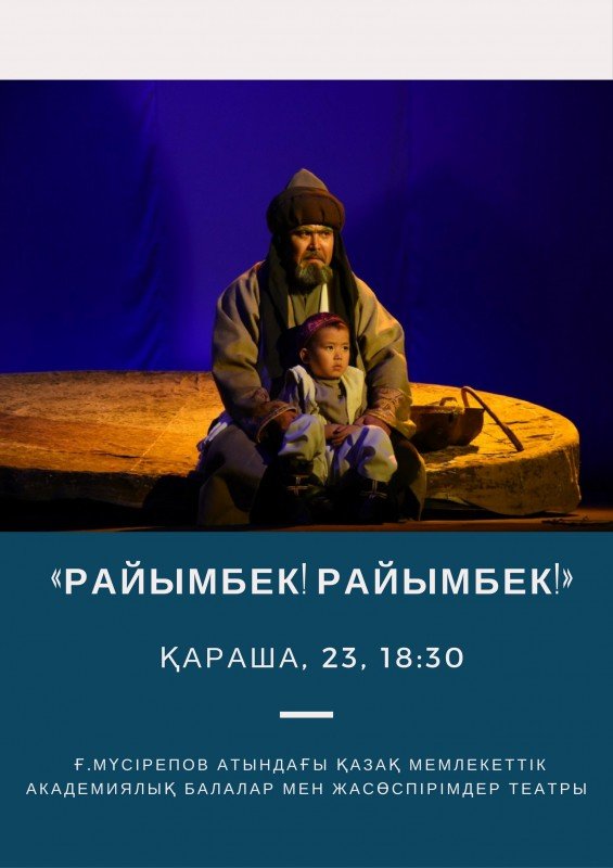 В основу спектакля легла одноименная поэма Мукагали Макатаева. Произведение казахского классика многослойно. Сквозь призму сюжета о сражениях Райымбека с джунгарами осмысливается череда драматических исторических событий: голод тридцатых годов, сталинские репрессии, коррупция, существовавшая во все времена, и как апофеоз драмы – ядерные испытания на Семипалатинском полигоне.