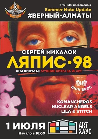 Всё закончится грандиозным концертом на крыше пространства Artхаус от легентарного Сергея Михалка: «Ляпис 98» с программой «Ты кинула. Лучшее за 25 лет».