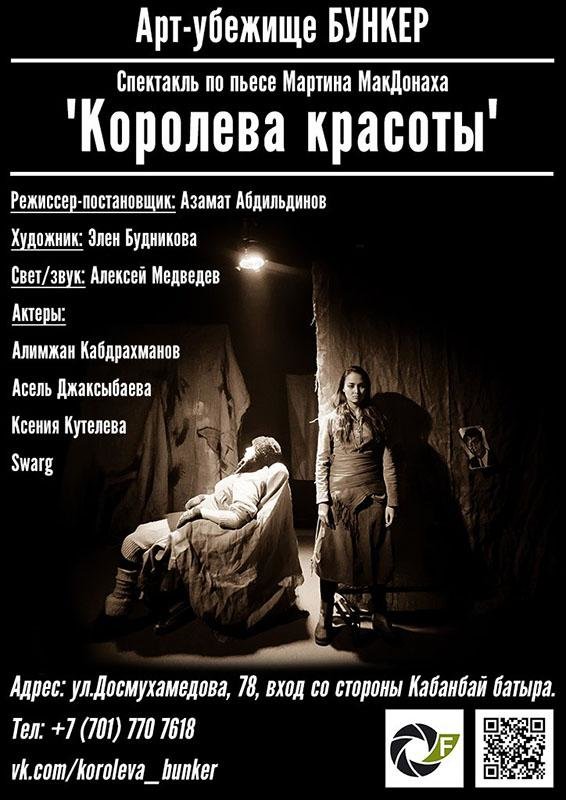 Постановка по пьесе ирландского драматурга М.МакДонаха рассказывает о жизни матери и дочери, Мэг и Морин Фолан. Они друг для друга невыносимы, они живут в постоянном раздражении, а все родственные чувства им давно заменило презрение. В «Королеве красоты» смертельно воюют за свое счастье беспомощная и одинокая женщины. Темперамент у обеих героинь зашкаливает все мыслимые пределы, поэтому разборки выглядят то фарсом, то настоящим «кухонным боевиком». В ход идут любые средства, от банальных скандалов до демонстрации бумаг из психбольницы и обливания кипящим маслом. По соседству, через горку, которую в грязь так просто не перемахнешь, живет семейство Дули. Братья Рэй и Пато становятся катализатором, который приводит конфликт в семье Фолан к жуткой, но логичной развязке.