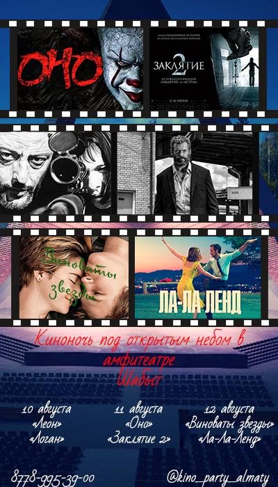Вы не только насладитесь просмотром самых культовых и любимых фильмов под звездным небом, но и будете приятно удивлены нашей шоу-программой, возможностью поучаствовать в конкурсах, выиграть призы, потанцевать, да и просто незабываемо провести несколько атмосферных ночей в нашем летнем амфитеатре!
