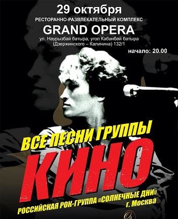 Редчайший случай наших дней, где творческая натура, мощная энергетика и личный драйв всех музыкантов группы, магнетизируют слушателей и приносят ощущение настоящего подлинного чувства единения с музыкой. Каждый концерт дает людям возможность общаться с группой посредством легендарных нетленных произведений: так что – Цой жив! Потрясающая разрядка и полное погружение в творчество “КИНО” обеспечены!