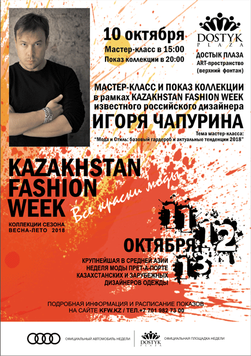 Почетный гость 21 сезона Kazakhstan Fashion Week – один из самых популярных и актуальных дизайнеров Росии Игорь Чапурин. В числе клиентов бренда Chapurin – первые леди России Людмила Путина и Анастасия Медведева, а сам дизайнер – дважды обладатель премии «Золотой манекен» и награды «Овация», победитель конкурса молодых модельеров компании Nina Ricci. 10 октября в арт-пространстве Dostyk Plaza Игорь Чапурин проведет мастер-класс, а затем продемонстрирует коллекцию в рамках Kazakhstan Fashion Week специально для алматинцев и гостей южной столицы.