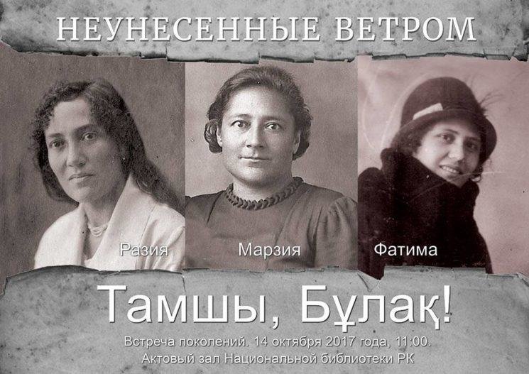 14 октября 2017 года в 11:00 в актовом зале Национальной библиотеки Республики Казахстан состоится Встреча поколений Неунесенные ветром. Разия, Марзия, Фатима.