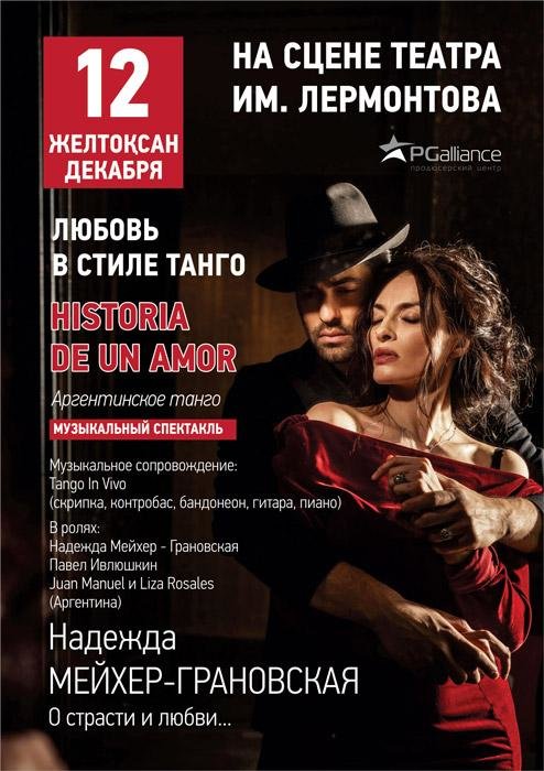 12 декабря в театре им. Лермонтова, Надежда Мейхер - Грановская представит авторский спектакль «ИСТОРИЯ DE UN AMOR». В спектакле, Надежда выступит в неожиданном для многих амплуа – режиссера, сценариста, исполнителя и танцовщицы аргентинского танго. Романсы прозвучат сразу на двух языках: испанском и русском. Аккомпанировать Надежде и ее партнерам по спектаклю будет живая музыка в исполнении оркестра TANGO EN VIVO.