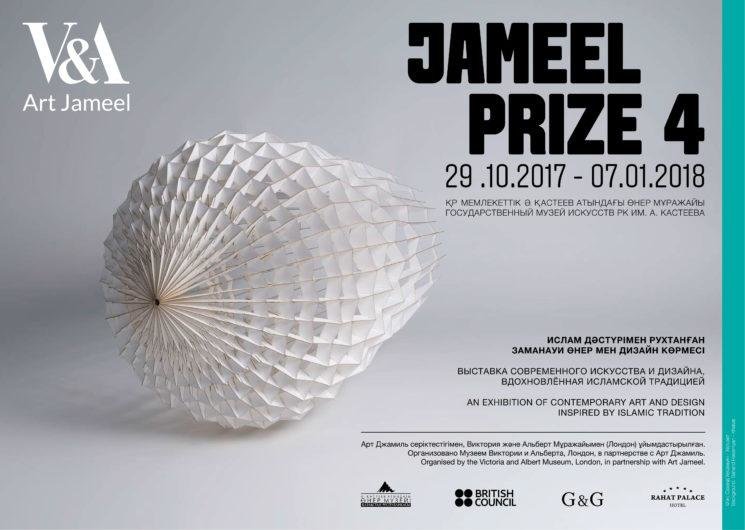28 октября 2017 года Государственный музей искусств им. А. Кастеева приглашает журналистов в 16:00 на пресс-тур, в 17:00 на пресс-конференцию и в 18.00 на закрытое открытие выставки Музея Виктории и Альберта (Лондон) финалистов четвертой премии «Джамиль».