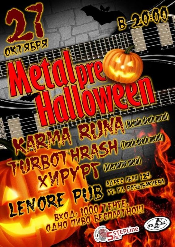 В Канун славного праздника Хэллоуин, 27 октября, для всех металхедов и не только, будет жаркий вечер из тяжелой музыки и праздничного настроения, приходите и оторвитесь как следует.