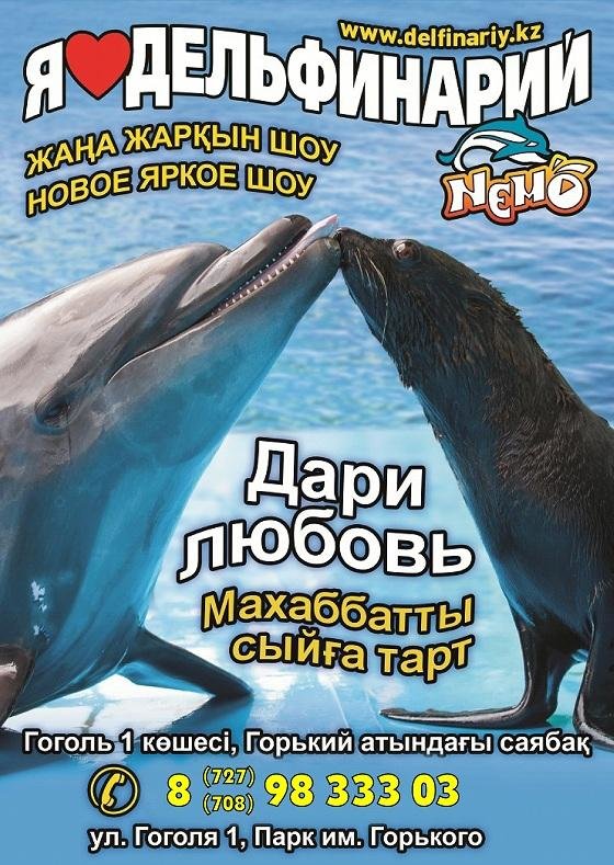Алматинский дельфинарий «Немо» приглашает на новую яркую шоу-программу «Морская фиеста», в которой участвуют Ваши любимые дельфины, морские котики и морская львица!