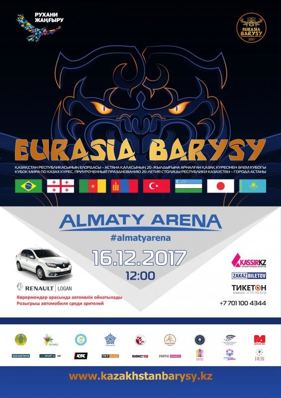 16-го декабря в спортивном комплексе "Алматы Арена" пройдет международный турнир по казах курес "Евразия Барысы". Престижное первенство впервые будет организовано в Южной Столице!