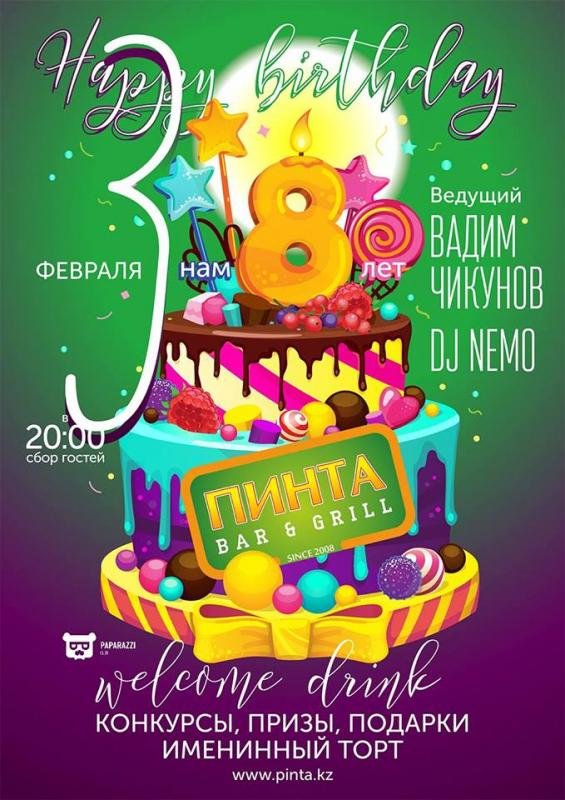 Особенно, когда такая отличная дата - 8 лет! Именно столько исполняется Пинте на пр. Назарбаева (бывш. Фурманова)