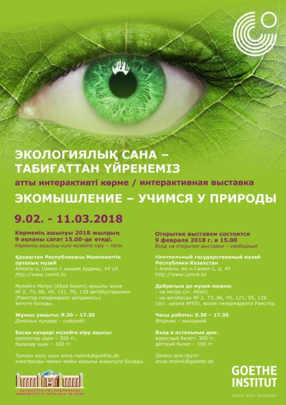 Центральный государственный музей Республики Казахстан совместно с Гёте-Институтом Алматы 9 февраля открывает Международную интерактивную выставку «Экомышление – учимся у природы».