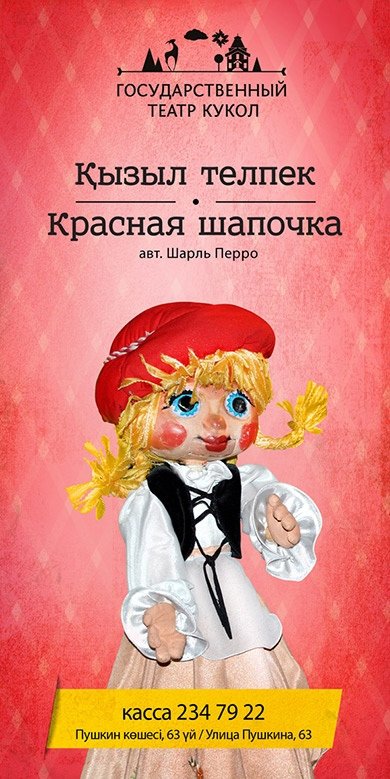 Қызыл телпек – мейрімді, бауырмал, қамқоршы қыз. Ол анасымен бірге орман шетінде тұрады, ал әжесі орманның екінші шетінде тұрады. Қызыл телпек анасы пісірген бәліштерді әжесіне алып бара жатып, жолда сұр қасқырға тап болады. Аш қасқырдан зорға құтылған ол әжесіне келеді. Бірақ, төсекте әжесі емес, әжесін жеген әлгі қасқыр жатады... Ертегі сәтті, күтпеген тосын сыймен бітеді. Ғажайып сиқырдың көмегімен қасқыр піл баласына айналады. Қызыл телпек пен піл баласы орманды күзетіп, гүлдерге су құйып, күтім жасайтын болады.