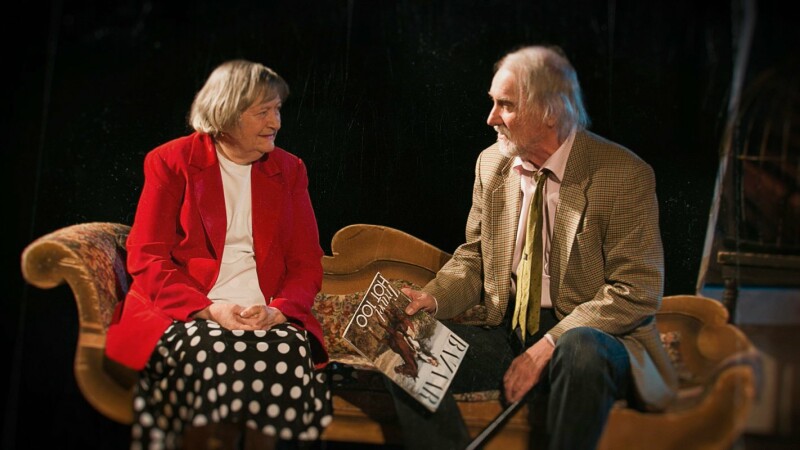 На заброшенной террасе дома престарелых мужчина и женщина коротают время за карточной игрой в джин.