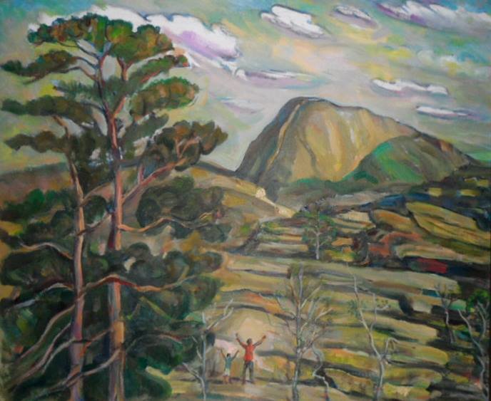 «Алтын бесік – туған жер» көрмесінің экспозициясында автордың 80-нен астам кескіндемелік және графикалық жұмыстары бар, олар – офорт, линогравюра, литография, қондығылы гравюра, кітап графикасы. Әр түрлі техникада орындалса да, бұл жұмыстардың әрқайсысы ұлттық колорит пен қайталанбас дара стильді бойына сіңірген.