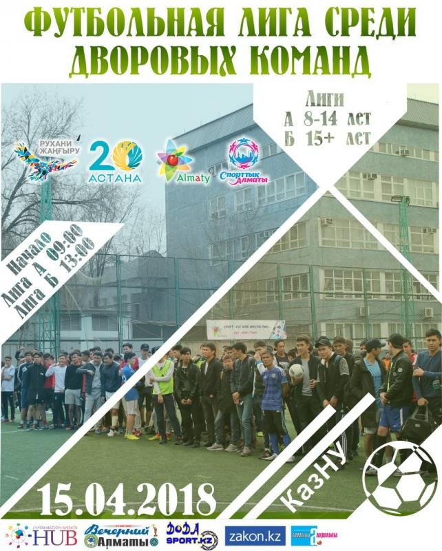 26 августа в рамках программы «Спорттық Алматы» состоится футбольная лига среди дворовых команд, сообщает информационно-спортивный ХАБ.