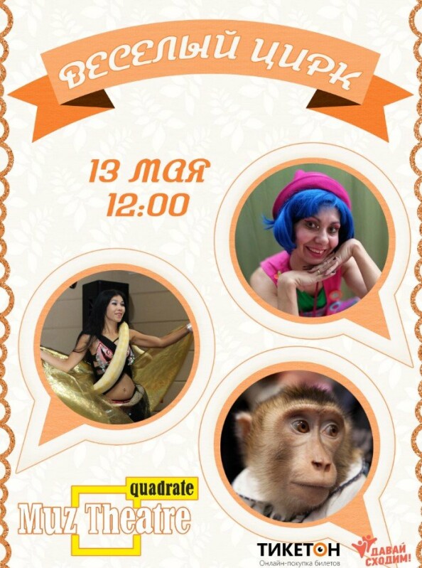 Две забавные обезьянки обещают большое веселье! Одна кукольная, а вторая живая покажут вам свои номера. Также веселить ребят им помогут клоуны. Они сыграют с детьми, покажут фокусы и репризы. А укротительница змей Наргиз покажет свой завораживающий номер.