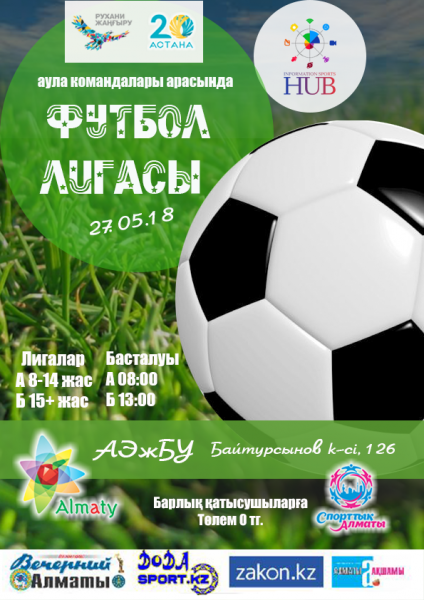 Футбольная лига среди дворовых команд в рамках программы «Спорттық Алматы» состоится 27 мая.