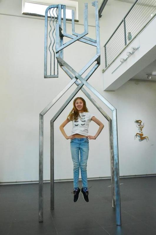 «На выставке представлены работы 2018 года, в основном все в стиле конструктивизма. На самом деле это своего рода возвращение. Эти работы берут свое начало, когда двадцать лет назад я только окончил институт. Я тогда мечтал, о том, что создам их в размере, а сейчас уже понял, что подошел к тому, что надо делать в размер, то есть в пространстве, в экстерьере. И это последняя ступенька перед этим, дальше я конструктивистские скульптуры буду выводить в размер. Может быть на следующей выставке будет одна скульптура, но на весь зал. И опять же, разные материалы, техники: нержавеющая сталь, черная, цветная, вороненая — это тоже уже как последний список перед новой дорогой», — Э. Казарян.