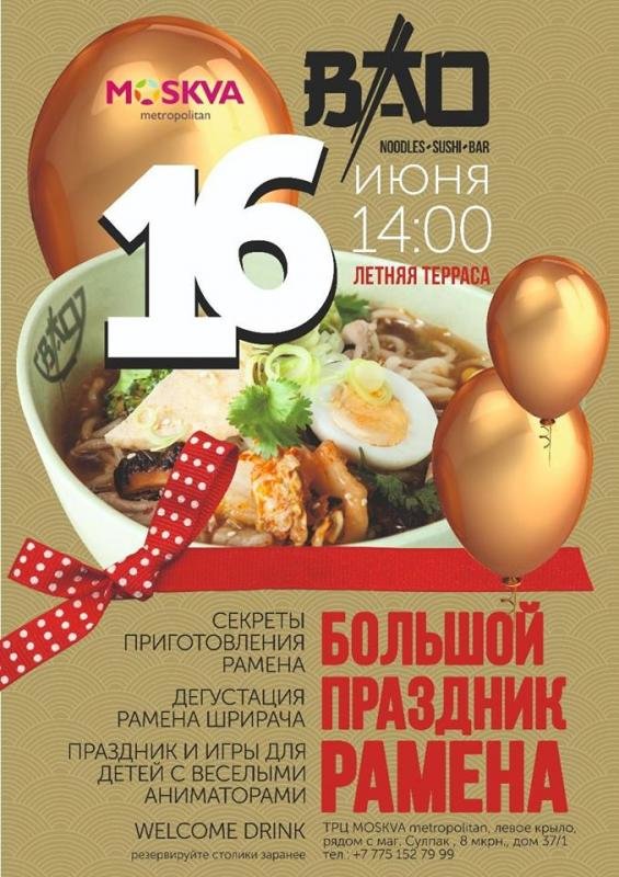 16 июня в 14:00 для Вас пройдет уличный праздник рамена!
