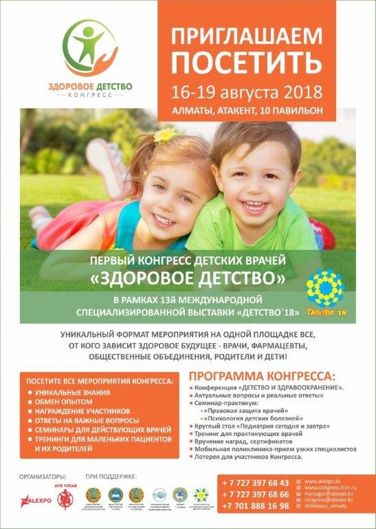 Впервые в Казахстане уникальное мероприятие 1й Конгресс Детских врачей Здоровое Детство. Конгресс направлен на повышение доступности и эффективности медицинской помощи. Девиз мероприятия «Здоровые дети-здоровое будущее».