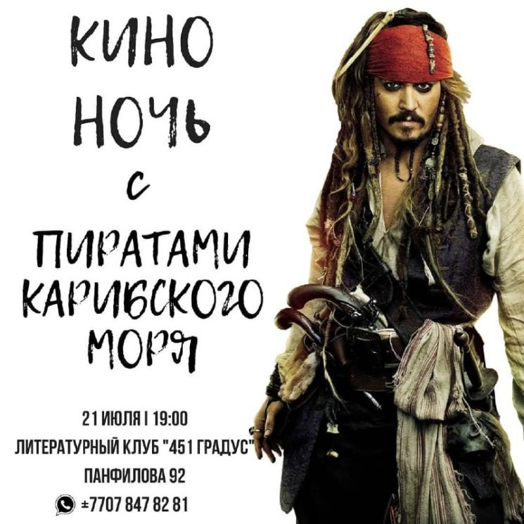 Литературный клуб «451 градус» приглашает всех на киноночь с Пиратами Карибского Моря.
