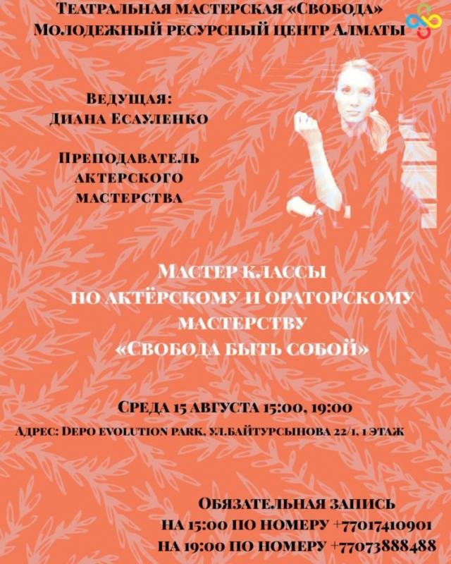 Театральная мастерская «Свобода» и Молодежный ресурсный центр города Алматы приглашают вас на тренинг по актерскому и ораторскому мастерству