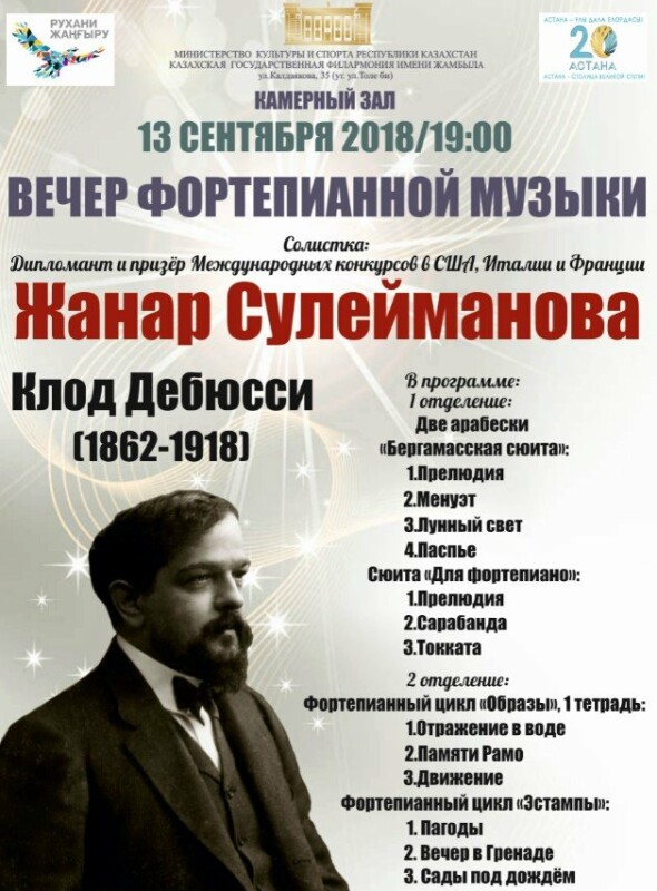 Солистка: Дипломант и призер Международных конкурсов в США, Италии и Франции - Жанар Сулейменова.