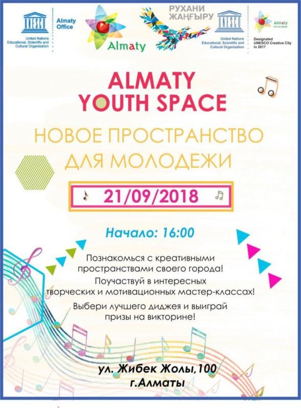 21 сентября в центре г. Алматы состоится главное событие для молодежи «Almaty Youth Space» в рамках празднования Международного дня молодежи и Дня города Алматы.