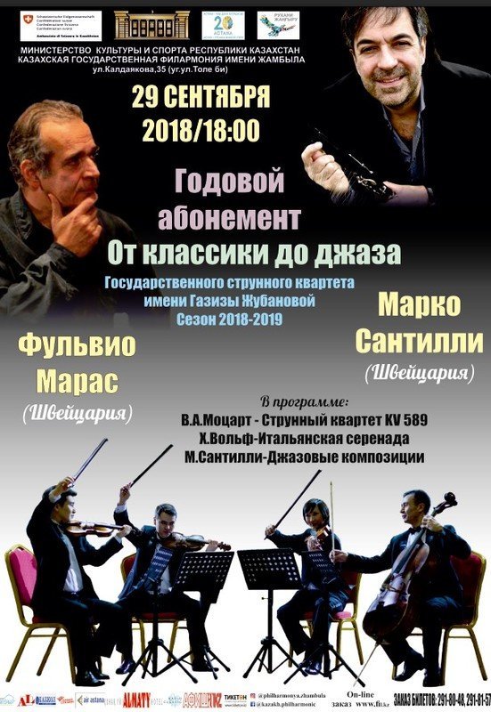 Годовой абонемент «От классики до джаза» Государственного струнного квартета имени Газизы Жубановой.