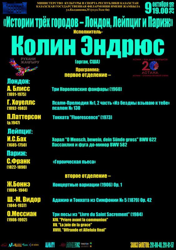 В филармонии имени Жамбыла, 9 октября состоится концерт «Истории трех городов — Лондон, Лейпциг и Париж».