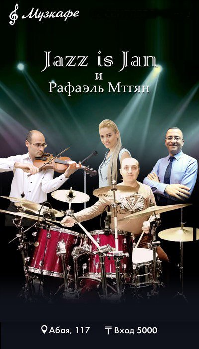 Музкафе и постоянные гости любят эксперименты со звуком. Особенно, когда эти опыты ставят мастера и делают это. Поэтому, вот 12 октября встречайте вокально-инструментальный бэнд Jazz is Jan и Рафаэля Мтгяна из Армении. Чтобы джаз, фольклорные, романтические и танцевальные композиции, а также мировые хиты с привкусом традиционной армянской музыкальной культуры.