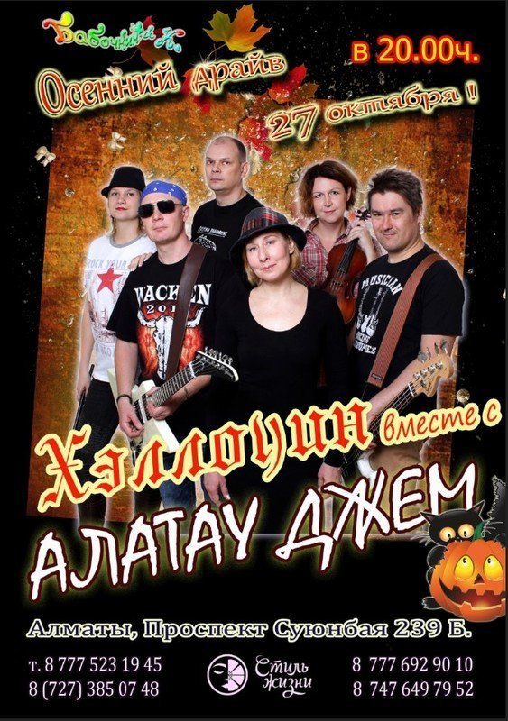Концерт музыкальной группы «Алатау Джем» и «Бабочкин и К» с костюмированным праздником «Хеллуин». Создаём атмосферу незабываемого драйва и забойного веселья!