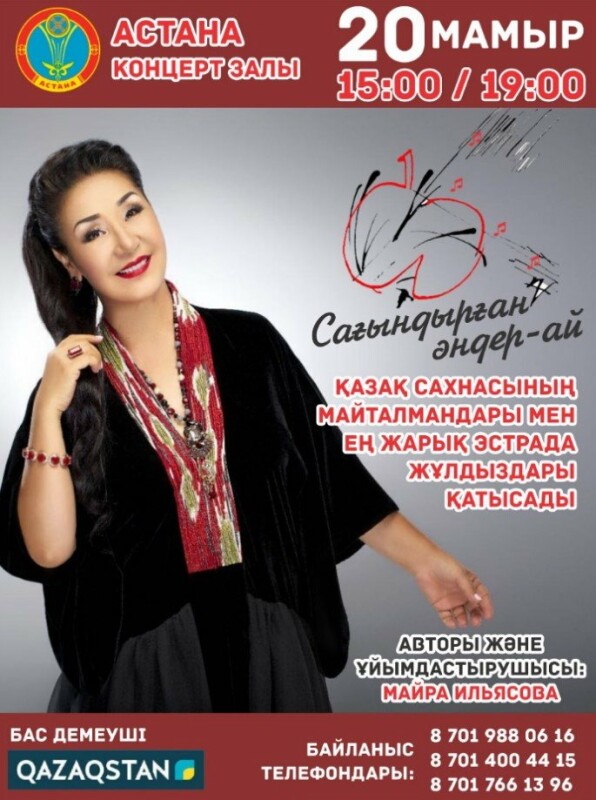 Қазақстан Республикасының Еңбек сіңірген әртісі, «Құрмет», «Парасат» ордендерінің иегері әнші – продюсер Майра Ильясованың ұйымдастыруымен «Сағындырған әндер – ай» ретро ән кешінің 2018 жылдың 18 қараша күні сағ: 15:00; 19:00 – де «Студенттер сарайында» өтеді.