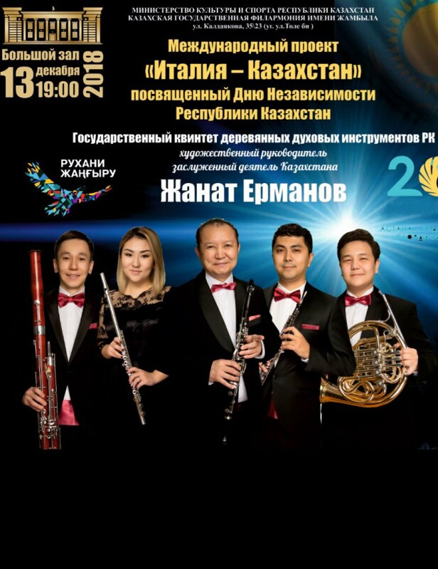 В. А. Моцарт, А. Вивальди, Дж. Верди, В. Беллини, Дж. Россини, А. Понкиелли, А. Цемлинский, К. Дебюсси, Ж. Ибер, Д. Мийо, А. Копланд (казахстанская премьера)