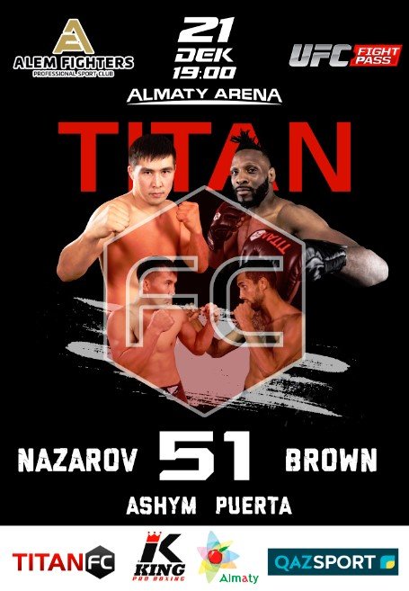 21 декабря в многофункциональном комплексе Almaty Arena состоится большой международный турнир по смешанным единоборствам ММА «Titan FC 51».