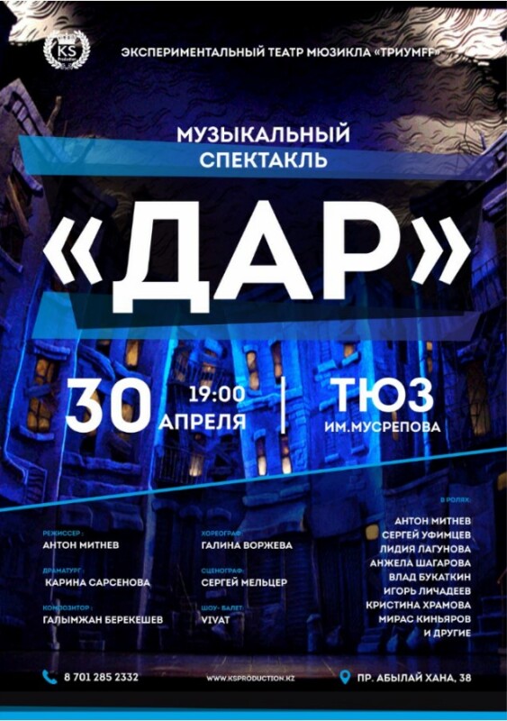 Театр мюзикла – ТРИУМFF представляет полностью авторский музыкальный спектакль «ДАР» с участием заслуженных деятелей РК.