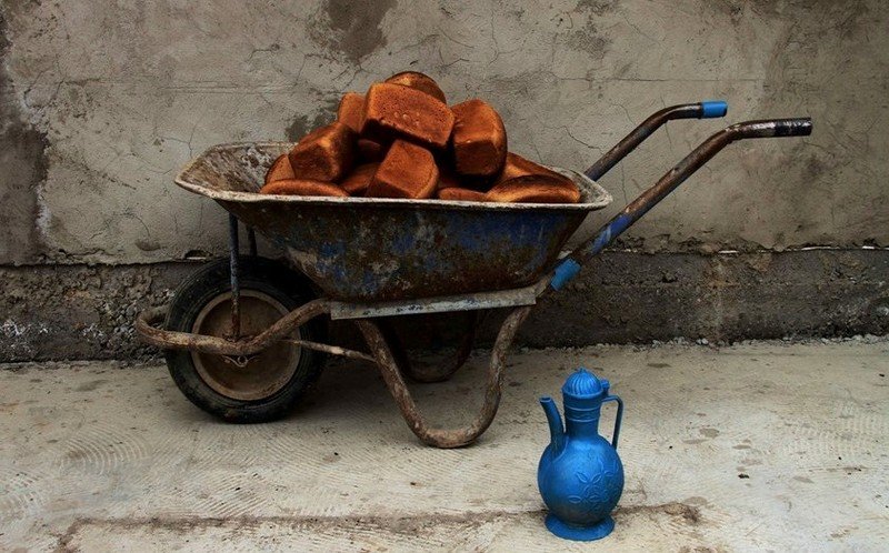Обращаясь к вечным материям — вода и хлеб, Арыстанбек одновременно, сакрализует обряды и традиции нашего региона, но и доводит до абсурда кульминацию смирения и обреченности.