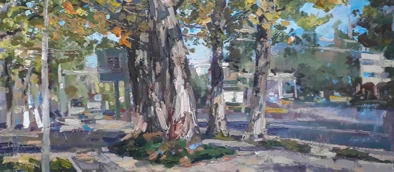 Для Нурлана Абишева городские пейзажи — это возможность учиться у натуры, совершенствовать свою живописную палитру и мастерство композиции.