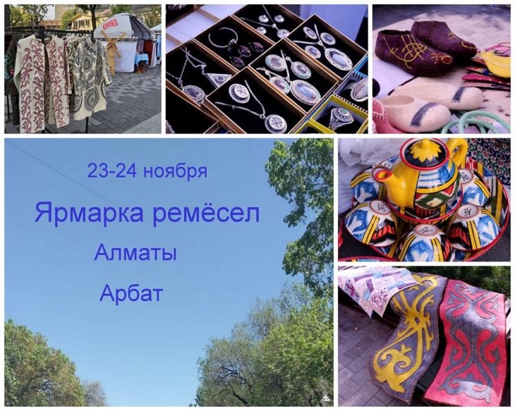 Алматинская палата ремесел проводит традиционную «Ярмарку ремесел». Посетители ярмарки смогут сделать для себя подходящий выбор из огромного числа представленных мастерами изделий, таких как керамика, казахстанские сувениры, красочные пиджаки и халаты, войлочные панно и ковры ручной работы, национальную посуду, замечательные сумки и игрушки ручной работы, украшения с казахстанскими агатами и сувениры из натурального камня, серебряные и бисерные украшения, изделия из войлока и уютные тапочки и многое другое.