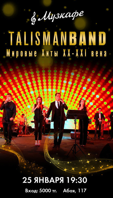 Talisman band – это не просто группа, а малый эстрадно-симфонический оркестр, где выступают настоящие профессионалы и квартет с неповторимыми голосами 4-х солистов. Ну и конечно яркий фейерверк хитов XX-XXI века.