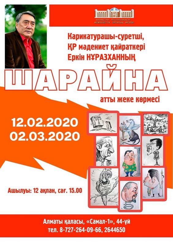 Выставка «Шарайна» демонстрирует мировоззрение художника-карикатуриста и знакомит посетителей с серией шаржей публичных людей, образами различных героев современности, государственными и общественно-политическими деятелями, известными деятелями науки, культуры и искусства — И. Тасмагамбетовым, М. Шахановым, Р. Рымбаевой, М. Бейсембиновым, Б. Аюхановым, К. Бекхожиным, К. Сегизбаевым, А. Сарсенбаевым и другими. Портретные дружеские шаржи Еркина Нуразхана добродушно юмористические.