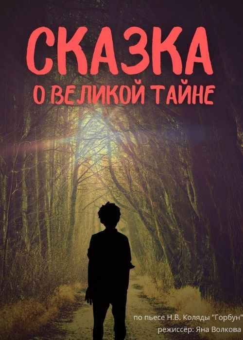 Спектакль «Сказка о Великой Тайне» поставлен по пьесе «Горбун» Николая Владимировича Коляды. Это — не переосмысление или адаптация старых историй. «Сказка о Великой Тайне» — история совершенно новая, рассказанная на новый лад, но сумевшая сохранить в себе шарм классических сказок.