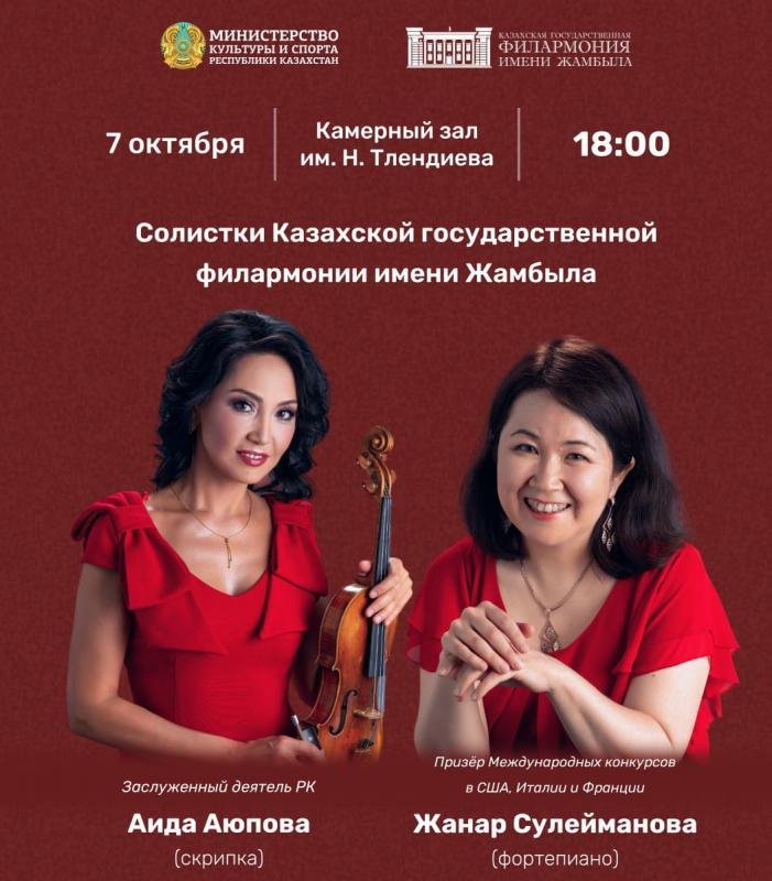 Место проведения: г. Алматы, ул. Калдаякова, 35, Казахская Государственная филармония им. Жамбыла, Камерный зал им. Н. Тлендиева