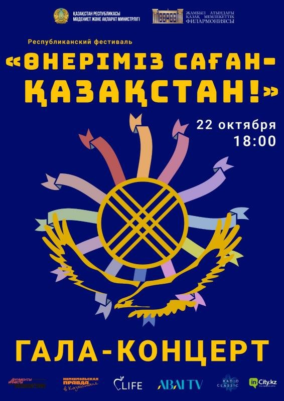 При поддержке Министерства культуры и информации а РК, Казахская государственная филармония имени Жамбыла в честь Дня Республики, 22 октября 2023 года в 18.00 проводит республиканский фестиваль «Өнеріміз саған-Қазақстан!"