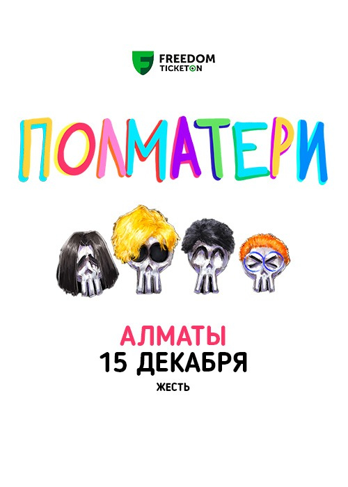 Полматери - молодёжная образовательная рок группировка, выступит в вашем городе уже совсем скоро. Зажигательные песни,зрелищное шоу и несравненный Марголдин — вот, что ждет тебя на концерте.