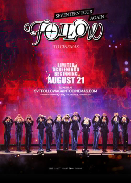 «Похоже, мы отлично потрудились ради этого дня». Первый концерт SEVENTEEN на стадионе Кубка мира в Сеуле и тур на бис [SEVENTEEN TOUR «FOLLOW» AGAIN TO SEUL] выйдет на большие экраны по всему миру в августе этого года, продолжая и обновляя историю группы. Долгожданное шоу от тринадцати участников, премьера песни MAESTRO и эксклюзивного исполнения хитов Spell, LALALI, Cheers to youth – фильм запечатлел все эти незабываемые моменты с помощью профессиональных кинокамер с разных ракурсов, обеспечивая полное погружение в атмосферу живого концерта. Фильм-концерт начинается с мощного дневного выступления, переходящего в грандиозное музыкальное шоу. Кульминацией станет ночное небо, освещенное лайтстиками CARAT – как апофеоз 9-летнего творческого пути группы SEVENTEEN.