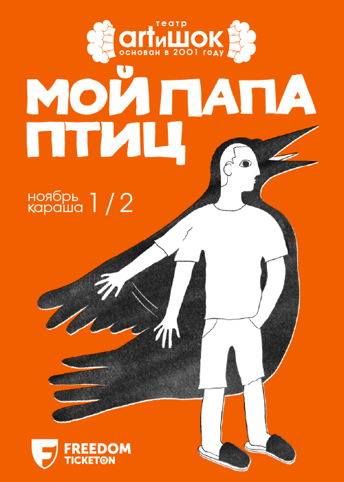 Tеатр ARTиШОК в дни зимних школьных каникул приглашает на классный детский спектакль «Мой папа – птиц»! Основа истории – потрясающая книга Дэвида Алмонда в переводе Ольги Дробот, источник вдохновения для детей и взрослых. Главные герои: девочка Лиззи и ее папа, который однажды решил, что он – человекоптиц. А самое главное, он хочет и будет принимать участие в конкурсе летунов, да еще и в канун Нового года!