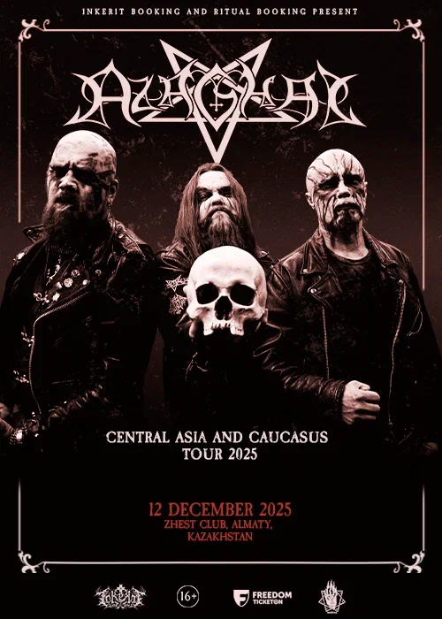 В середине декабря прямиком из Финляндии нагрянут AZAGHAL – культовая формация, вот уже почти 30 лет играющая бескомпромиссный блэк метал старой школы. За свой долгий творческий путь музыканты успели записать одиннадцать альбомов и сменить два названия, остановившись в итоге на имени могучего владыки гномов из вселенной Джона Рональда Руэла Толкина, ставшей источником вдохновения для множества групп в жанре. В конце 2025 года группа планирует дать несколько концертов за пределами родины, два из которых пройдут в окружении гостеприимной казахской публики, а так же впервые посетит Грузию и Армению. Приходите и в полной мере прочувствуйте всю суровость финского блэк-метала!