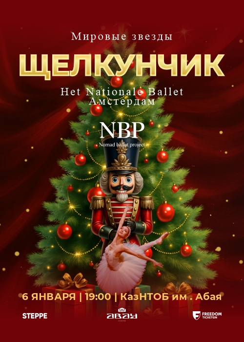 На сцене Театра Абая — грандиозный балет «Щелкунчик» в исполнении приглашённых звёзд Het National Ballet (Амстердам) — Yuanyuan Zhang и Vsevolod Mayevski и артистов Театра Абая.